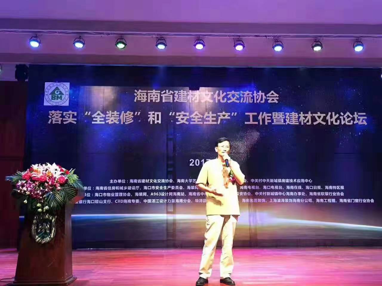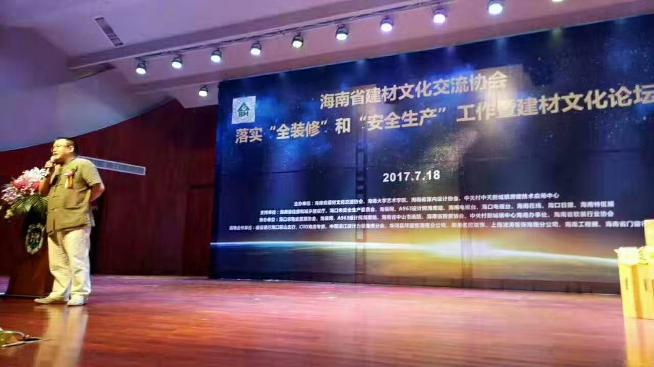2017年7月18日下午,海南省建材文化交流协会落实“全装修”和“安全生产”工作暨建材文化论坛在海南大学艺术学院音乐厅圆满举行,来自海南设计界、装饰界、建材界、行业相关主管领导及社会人士共200余人出席了此次论坛。