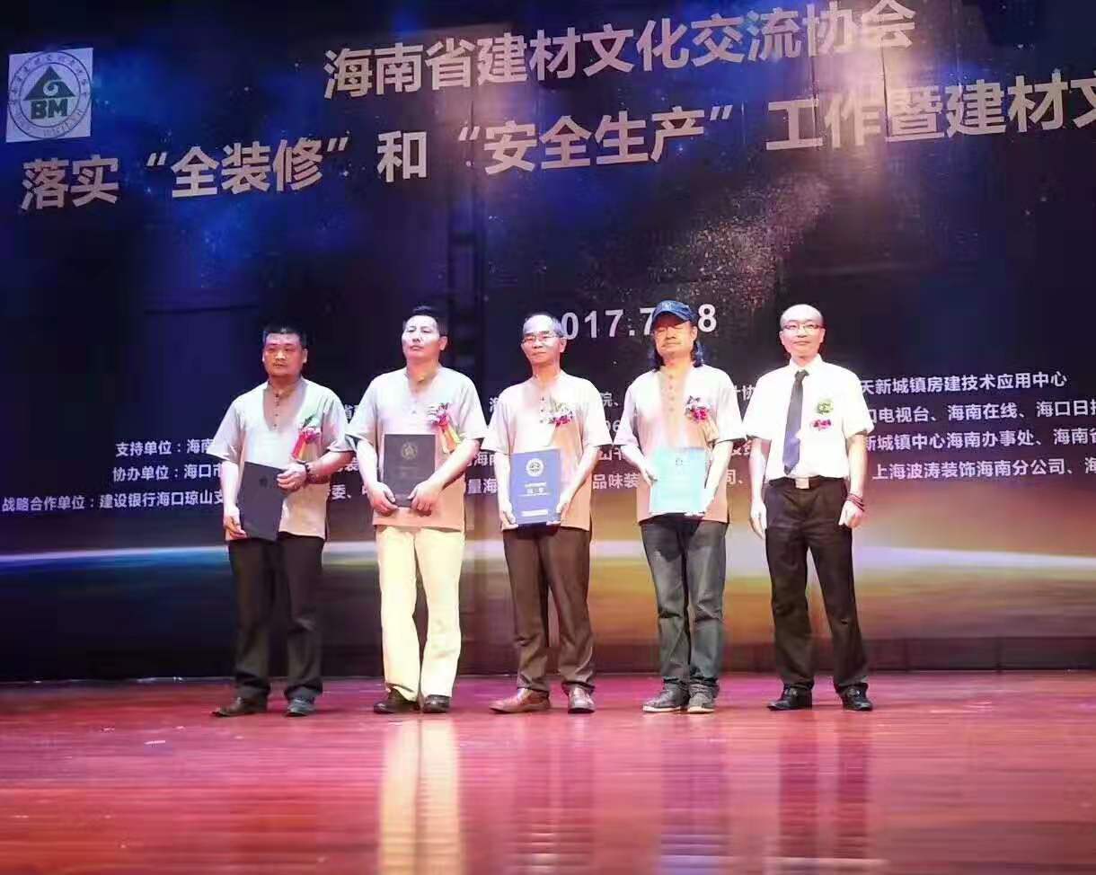 海南省建材文化交流协会会长符森向协会顾问代表颁发聘书
